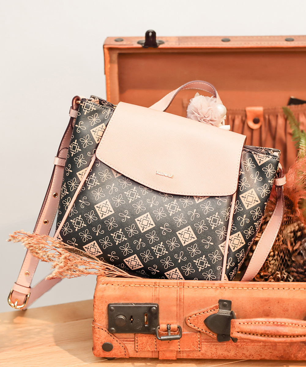 KINAZ 掀蓋LOGO老花手提斜背蝙蝠包-克拉拉系列、